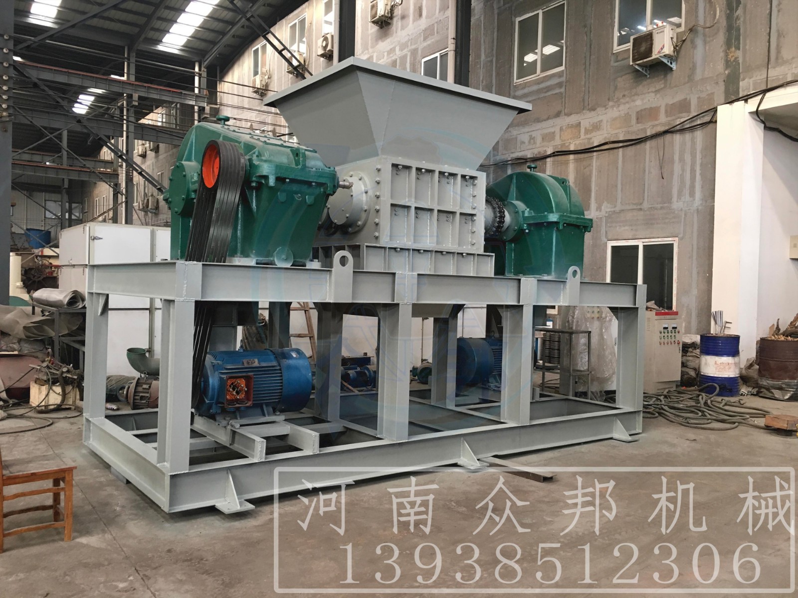 河南眾邦礦山機械設備有限公司(原河南省礦山機械設備有限公司)是專業從事研磨設備、破碎設備、粉碎機械、人工制砂設備、各種配套礦山設備以及各種民用設備的開發和生產的單位,公司主打產品:樹枝粉碎機,園林綠化樹枝粉碎機,城市綠化樹枝粉碎機,手推式樹枝粉碎機,鏈板進料木材破碎機,大型木頭樹枝粉碎機,環錘式破碎機, 顎式破碎機,液壓對輥破碎機,液壓雙輥制砂機,對輥制砂機,反擊破碎機,齒輥式破碎機,木材粉碎機,木料粉碎機,鋸末粉碎機,木屑粉碎機,礦石破碎機,木材切片機,木頭削片機,木材破碎機,鋸末烘干機,雙輥式破碎機等。自公司成立以來,注重自身形象建設,堅持以“誠信為本,品質至上”的經營理念,深受廣大國內外客戶的好評。公司擁有一支經驗豐富、技術精湛的售后服務團隊,客戶購機前,公司免費派工程技術人員到現場為用戶規劃場地,設計最佳流程和方案;購機后,公司將免費指派專業的售后服務人員到達現場指導客戶安裝調試和規劃管理設備。眾邦機械始終以;真誠的信譽,先進的技術,可靠的質量,滿意的服務來滿足廣大客戶對我們公司產品的需求。